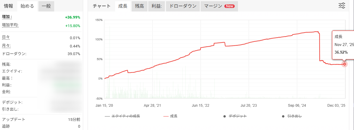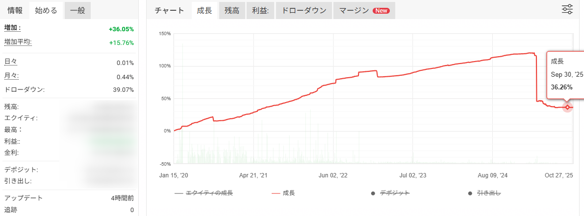 こちらはバックテストではなく、実際に運用しているデータとなります。